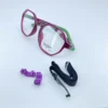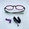 Montura flexible en TR90 para niña, acompañada de accesorios. Este modelo en color morado es ideal para niñas que buscan estilo y comodidad en sus gafas.